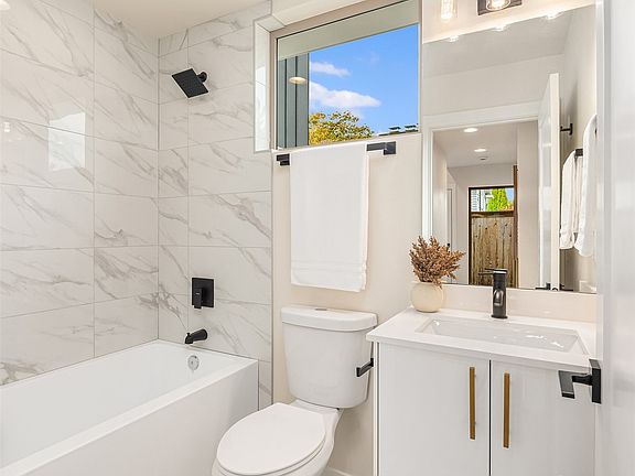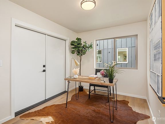 Welcome to this new construction cottage in spectacular Green Lake location. First floor boasts full bath and bedroom, plus bonus room! This extra space features its own entrance - perfect for office, workout room, or storage. Open concept main floor with soaring ceilings, spacious counter seating and covered balcony - great for BBQ. Top floor hosts primary suite, complete with accent wall, luxurious ensuite with double vanity & walk-in closet. Private roof deck maximizes 360 mountain & lake views. Recreation abounds, just blocks to the water and trail. Minutes to Phinney Ridge neighborhood for ample eateries and boutiques. Rare off-street EV-ready designated parking for TWO vehicles with easy access to your bonus room or front entrance.