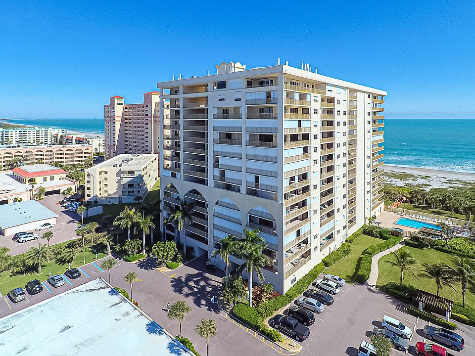 Extra Garage Included! Seller pays $36k assessment. Wide, Direct Ocean front condo with perfect views of beach, rockets, cruise ships, boats and sunrises. Double door entry into oversized 2/2 condo with 8' impact sliders and 9' ceilings. Designer plank flooring, no popcorn, Updated moldings, Hunter Douglas Vertiglide shades, Plantation shutters, New AC, stainless appliances, 7 closets. Shared garage and second private garage with 2 large storage rooms. Complex includes lush tropical grounds awayfrom A1A noise, Resort style heated pool, spa, tennis courts, sauna, billiard room, library and exercise room. Walk to shopping/restaurants. Award winning schools, Wide beach with federal sand renourishment program. Secure building, 50 minutes to Orlando airport.