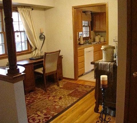 PLEASE CALL THE NUMBER ON THIS AD! This remodeled home features 3 bedrooms on the main floor ,separate dining room, 1.5 baths, recently redone with custom tile and all new fixtures. The beautiful kitchen has custom built oak kitchen cabinets, custom tile on the backsplash with a dishwasher and tile floors. The living room has just been painted, a sliding glass door out to the private back patio and a fenced yard with a storage shed. The full basement has a large finished rec room , laundry room , extra room for an office or work out room, and a large storage room. 1 car attached garage with opener. Hardwood floors and are natural oak throughout the entire main floor. central heat and air. Don't miss this really great tree lined neighborhood located at Maize and Central. Peterson elem,Wilbur middle, northwest high district. $1350.00 a month on a years lease. deposit and credit check.please call with number listed for a appointment available 12-10