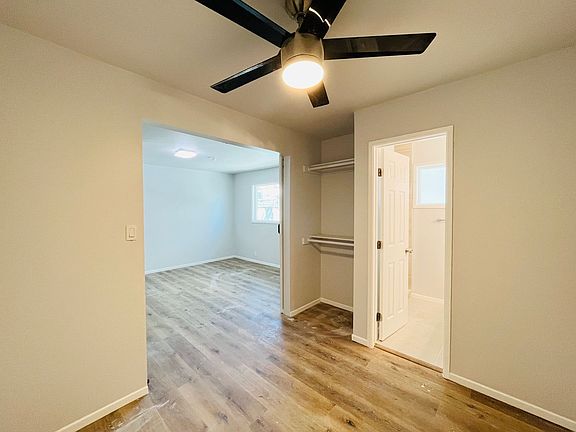 Beyond the stylish sliding barn doors, you'll find an adorable bedroom. The bathroom boasts a brand-new vanity and a stand-alone shower, complemented by a window that allows fresh air to flow in.
