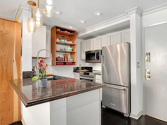 Desirable gated communityPrivate quiet courtyard-facing homeAiry open-concept layoutExcellent natural lightUpdated kitchenSecure building access