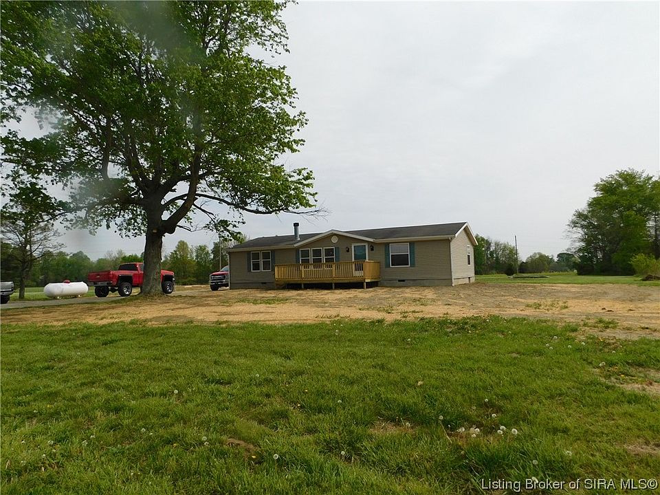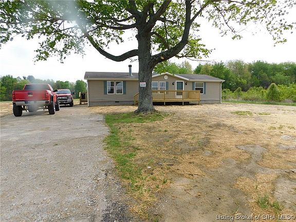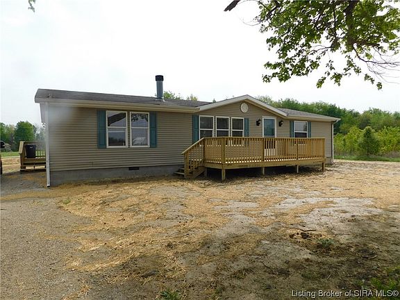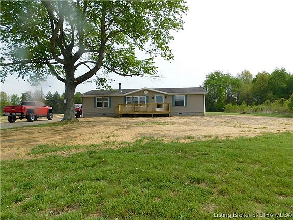 Beautiful PANORAMIC COUNTRY VIEWS from ONE of TWO new DECKS on this 3 BR., 2 Ba. home on a corner with 5 lots for a total of 1.03 Ac. Open floor plan with 1512 Sq. Ft., large living room and fireplace. Spacious kitchen with lots of cabinets.. APPLIANCES included, split bedrooms for privacy.. all have large walk in closets. Lots of new in this remodeled home including a new concrete foundation, new double pump mound septic system, new laminate flooring, new water lines from the road to the house, some new electrical work, NEW STOOP, new patio door and exterior door. Freshly PAINTED, new light fixtures. Plenty of room for a 2 car attached garage or a Detached Garage or Pole Barn. Lots of road frontage and a great location.. 6 miles from I-65 and 1.5 miles from State road 56.