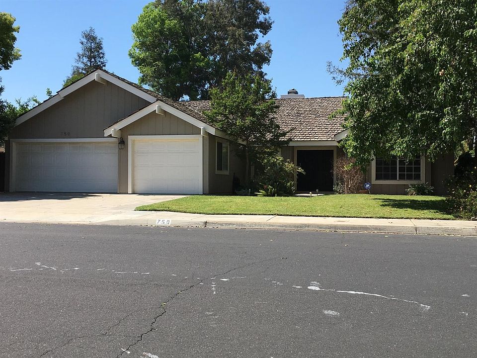 New Roof! Come see this adorable home in a quiet Clovis neighborhood. We have wood laminate flooring throughout the home. Lovely wide entry way leading to a large Family Rm w/high ceiling & fireplace. French doors to the right of the entry way lead to a peaceful living room dining area which is complete w/vaulted ceiling. Granite counter tops in the roomy kit include a breakfast bar, double stainless steel sink. Large kitchen window above sink overlooks the pool. Cabinets galore with built in dishwasher and stove. Fridge, washer/dryer do not stay with the home. Tax records list the home as a 3 bedroom home, however the previous owner converted the single car garage into a 4th bedroom, complete with closet, window and ceiling fan. The garage door is intact on the home so that you could revert back to a 3 car garage if necessary. Inviting large built in pool & covered patio, perfect for entertaining. Bedrooms are carpeted and have ceiling fans. Master bath includes a soaking tub.