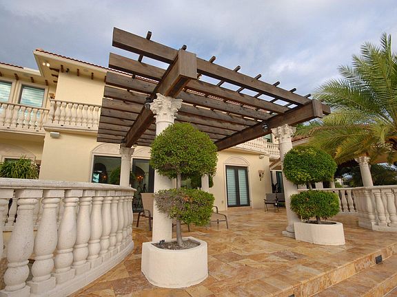 - Exterior features: Auto Sprinkler, Built-in Barbecue, Custom Lighting, Open Balcony, Outdoor Kitchen, Wrap-Around Balcony, Dock