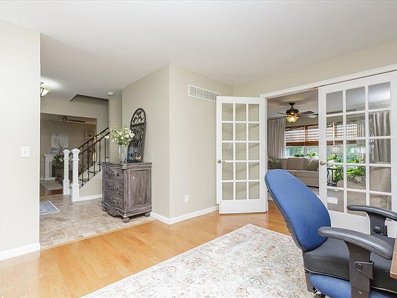 Stunning 2-story home on a quiet cul-de-sac with exceptional curb appeal, new gutters, and a new roof coming soon. The backyard is an oasis with a pergola, pavers, elevated planting beds, solar lights, and a serene pond with a waterfall. The main floor features a freshly repainted interior, a cozy living room with a woodburning fireplace, sitting room, front office and a gourmet kitchen with 42” soft close cabinets, granite countertops, tile backsplash, wine fridge and a huge center island. The adjacent laundry room includes a barn door and is conveniently located off the garage. Upstairs, the primary suite offers vaulted, beamed ceilings, a remodeled ensuite bathroom with a tub and chandelier, large tiled shower, and granite vanities. Three additional bedrooms have laminate flooring and ceiling fans. The finished basement includes a rec. room with wet bar, an extra bedroom, and a bath with a shower/tub combo. The 3 car OVERSIZE garage and ample storage complete this versatile home. Additional Rooms: Mud Room