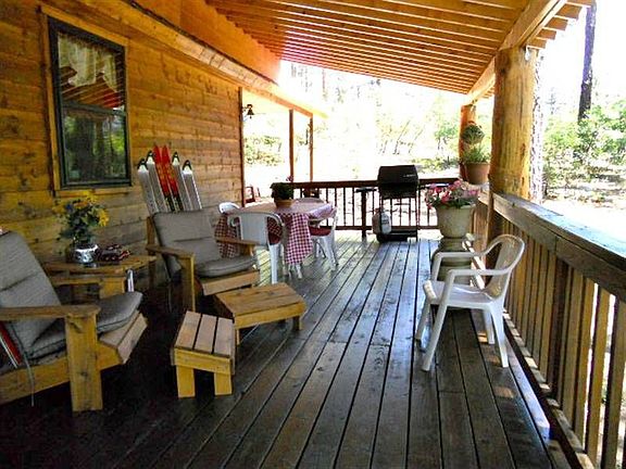 Wonderful family getaway or full time home in the woods. Light and bright open floor plan with kitchen, living room, den, master bedroom and two bathrooms on main level. Walk to Lake Simpatico or BLM land at the end of the street. Just bring your tooth brush as furniture, 2nd refrigerator, linens, towels, dishes, utensils, knick knacks, etc., are included in the sales price. Fantastic moss rock wood-burning fireplace with Star insert, blowers and glass doors. Master bedroom and bath were added in 2005. Upstairs loft is separated into two bedrooms, one overlooking the living room and fireplace. Downstairs is 4th bedroom with attached 3/4 bath and laundry facilities. Large lodgepole covered deck off the country kitchen, plus separate patio off master bedroom. RV parking with dump station to sewer system.