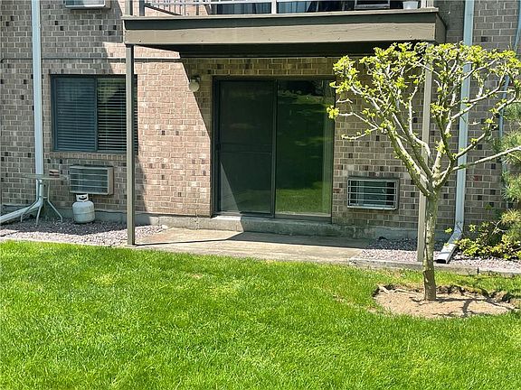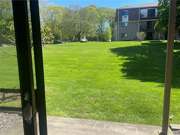 Desirable One level on First Level with sliders leading to patio facing beautiful back grounds. One level living, 1 bedroom, 1 bath, Master Bedroom with large walk-in closet, updated bath vanity and kitchen cabinets, 2 built in AC units (bedroom and living room). Complex offers: in-ground Pool, club house, tennis and basketball court. Fees include: Heat, hot water, water & sewer. Lots of parking, laundry in complex and extra storage for unit. Why Rent? Own for less. Convenient location--centrally located: minutes to Rt 95, East Greenwich, Bald Hill and Rt 4. Complex Not FHA approved