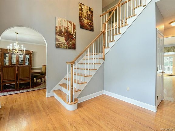 Welcome to 750 Reservoir Road Private & picturesque grounds welcome you home with wonderful living spaces both indoors & out. Set on 2.51 acres, this home offers open & airy spaces and desirable first floor primary bedroom suite. You will be greeted with a sunny two-story entry with turned & open staircase. The dining room is to the left off entry & leads to through to the large eat-in kitchen. Straight ahead through the main hall is the great room with hardwood flooring, built-ins & fireplace with a wall of windows & french doors leading to the deck & outdoor space. The 1st floor bedroom suite & attached sunroom, large walk in closet & spacious bathroom is a welcomed retreat. A powder room just off the hall and another half bath/laundry room is by the 3 car garage entry off the kitchen. Upstairs are four generously sized bedrooms - two offer bathrooms. One bedroom allows for expansion with roughed in plumbing ready for an additional bathroom if needed. The finished basement offers even more living space with shelving, pool table, wet bar & half bath. There is plenty of unfinished space with walkout to the yard for additional storage or use as a workshop. Outdoors, you'll find the large deck overlooking the grassy yard with water views of the reservoir. Steps down from deck leads to a patio and a quaint gazebo tucked away and custom stonework in both the front and rear of the property. This home also offers an irrigation system, propane generator & more. Come & tour today.