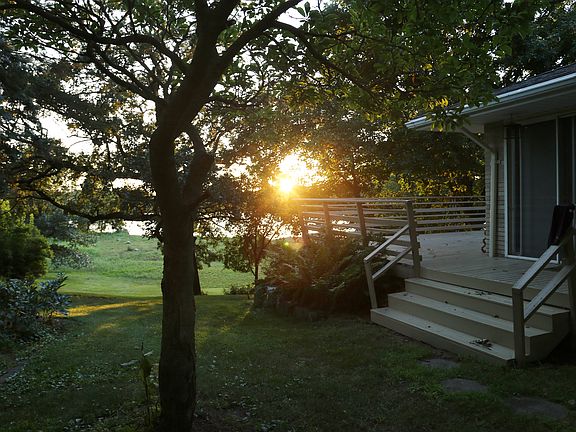Warm, well-built home with solid wood & brick all around, a perfect floorplan & breathtaking nightly sunsets awaits you ! The main floor contains the large master bedroom with lake view, large walk-in closet, and private master bath; large 12x16 second bedroom, and third 12x12 room for a bedroom, office, or craft room. These bedrooms, as well as downstairs guest bedroom, are independently heated/cooled from the remainder of the home. Large 16x22 dining room with full bay window with lake view & fireplace; Large, bright 16x26 living room for gatherings and kids play; Great kitchen w/ enormous amount of storage, large breakfast bar/food prep counter, and modern oven, gas stove top, and sink. Mudroom area off the kitchen makes for a great 2nd table or desk area. Half finished basement w/ large living room & 2nd fire place, large 12x18 laundry/storage room, and large 16x16 guest bedroom & private bath. 16x70 unfinished basement for great shop area & storage. The property is large totaling 1.6-Ac, including some outstanding pin oak, maple, and pine trees, near the swimming pool & park, 6-block walk to the downtown, in an incredible neighborhood, and on very private street. And the lake view is...incredible...every....single...day !!!