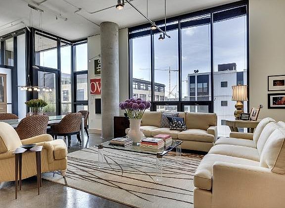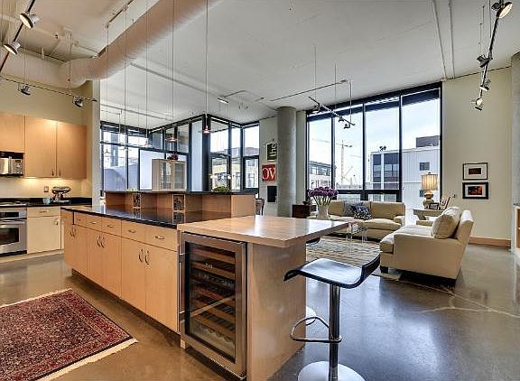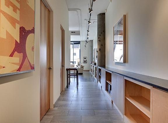 Outstanding corner location in Humboldt Lofts! Prime Mill District Landmark building. Upgrades include custom casework and top of the line Bang & Olufsen music system with 2 amazing wall mounted TVs. Wood shades for all windows, optional black out screens