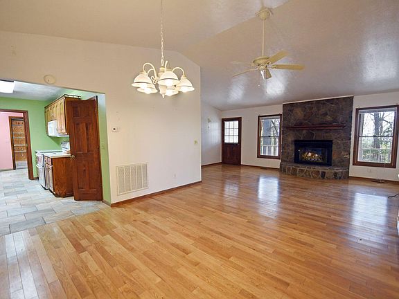 Wonderful RANCH Home! ALL ONE LEVEL... EASY LIVING! This 3/2 ranch features 2 car garage, split plan - great starter home or for retirement living. Spacious living room with rock faced gas log fireplace and vaulted ceiling. Walk thru mudroom w/utility sink between kitchen and garage. Bump-out area in one of the guest bedrooms - excellent reading nook/office. 3 closets in that one bedroom.. Large extremely private lot (2.69 Acres) with trees in all directions. Seasonal view, full-length rocking chair porch. Extra parking around back with turn-around and additional storage shed for toys. Exceptional price in this sought after neighborhood.