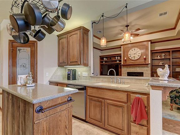This amazing and unique home sitting on over half an acre is stunning! The property boasts a perfect workshop/outbuilding with a fully functioning bar, wine cellar, and 3-tiered beer manufacturing system with built-in water supply, propane burners, and hoist lift. It also includes a kitchen with dishwasher and half bath. The backyard also provides a greenhouse with heat and electric. Inside the home, you'll find an amazing Florida room/screened in porch with built in shelving and ceiling fans looking over the backyard. An amazing living room showcases tons of built in bookshelves and custom woodwork flanking the fireplace, tray ceiling, and built in speakers. Other features of this home include: water softener, rain barrel, storm shelter, and tiled garage with built in workbench.