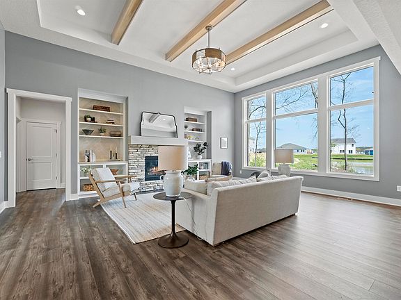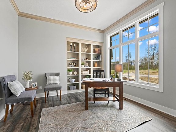Welcome to this Smokey River Retreat ranch floorplan with 2,274 sq ft on a half acre lot built by Quality Crafted Homes located in the Cliffs of Rolling Oaks in Carroll Schools! This absolutely breathtaking curb appeal has been professionally landscaped with a beautiful stone facade & copper gutter accents. Featuring 3 Bedrooms PLUS a Den with an open concept that makes entertaining a breeze. The Great Room features a tray ceiling with stained wood beams, a large picture glass window with views of the pond and a gas log fireplace flanked by built-in shelving. Cooking in this gourmet Kitchen w/a vaulted ceiling is any Chef's dream with quartz countertops, moroccan ceramic tile backsplash, Stainless Steel appliances plus an oversized walk-in pantry! Relax and enjoy nature out back on the covered concrete patio and take in the pond views! The Den area is right off the foyer with built-in bookcases and a custom barn door for choice of privacy. Master en suite with tray ceilings, a chevron accent wall, river marble walk-in shower, dual vanities and a huge master closet. This home has great proximity to the Bicentennial Woods hiking trail and the future Pufferbelly Trail extension. Come experience the difference of what Quality Crafted Homes has to offer, you can truly feel the difference!