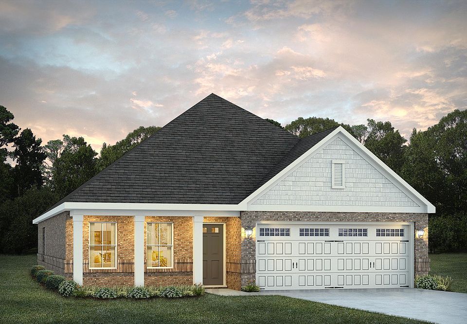 Simplistic and sensational, the "Kendrick" design offers fine details, all on one level with its attention to comfort and highly appealing use of space. Impressive great room with vaulted beamed ceiling and expansive space that offers a pleasant spot for family time or entertaining guests. Perfectly centered to the great room allowing open yet defined space, the kitchen is special in every way with granite island, custom cabinetry, and hardwood flooring. Separate primary suite allows privacy for the owner from the guests or other occupants of the house. Covered rear patio is great for an outdoor retreat. The two car garage completes the amenities to this all inclusive plan.