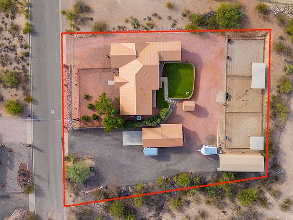 Beautiful horse property close to town with access to trails and riding. There are three 30 X 30 stalls with auto waters and shade. Tack room/hay storage. Pull thru circle drive and a RV shade. Home offers 3 bedrooms and 2.5 baths. Bright open floor plan with a large kitchen, updated Stainless appliances, island and large breakfast bar. Formal dining area and a large living room. Home has a split floor plan. The main suite has a large walk in closet and updated tile shower. The guest rooms both have large closets and one guest room has a private toilet. Out back you will find a lush grass yard and great patios for you to enjoy. Fenced front yard with mature citrus trees. The garage is tandem and has a work bench and built in cabinets. This home is ready for you to start your AZ dream.