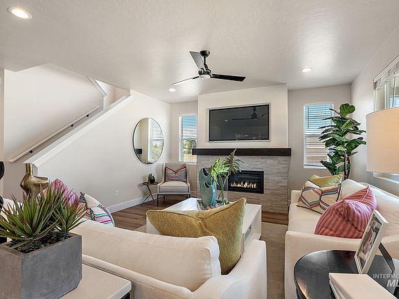 UNDER CONSTRUCTION - The “Hemingway” by Richmond American Homes. The main floor of the inspired Hemingway plan showcases a convenient powder room, a spacious great room and a well-appointed kitchen with a walk-in pantry and a center island. This level also includes a living room and an open dining area. Upstairs, you’ll find a loft, laundry, a shared bathroom and four bedrooms, including a lavish primary suite boasting a roomy walk-in closet and a private bath that may include deluxe features. You’ll love our professionally curated fixtures and finishes. Plus 9' ceilings and tankless water heaters, with front and back landscape and sprinklers along with full backyard vinyl fencing INCLUDED! Stop by our furnished model home 3286 S Grenze Way, Meridian, ID 83642 and ask about our special offers. Restrictions apply. PHOTOS SIMILAR