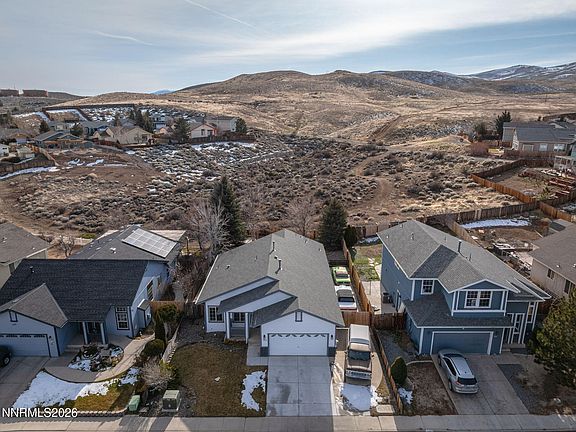 Step onto your back porch and take in the view—no rear neighbors! Nestled in the Peavine foothills, this cheerful 3-bedroom, 2 bath home features, high ceilings, and ceiling fans in both the living room and primary suite. The dining area showcases a recently inspected pellet stove perfect for cozy evenings, adding warmth and charm to the home. The open, updated kitchen offers generous counter space and glass-front cabinets, ideal for both cooking and showcasing your favorite pieces. A sliding glass door off the kitchen opens directly to your backyard with wide-open spaces and scenic trails. The primary suite includes a walk-in shower, while the insulated, drywalled garage adds everyday convenience. Outside, enjoy a patio and deck overlooking open space and your back gate opens to the open space. Additional highlights include RV parking and no HOA.
