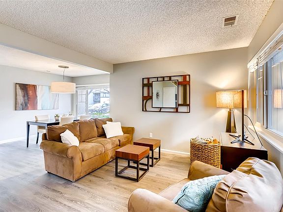 Tastefully updated townhome style condo in popular Tantra Lakes. All new stainless kitchen appliances, brand new vinyl plank flooring on the main level, updated baths, designer lighting, immaculate condition, just move right in and enjoy! The open floor plan in this end unit includes a spacious dining room, picture windows and a private fenced patio with small garden backing to HOA open space. Enjoy coffee on your master balcony, then stroll the paths around the lake or nearby Tantra Park.