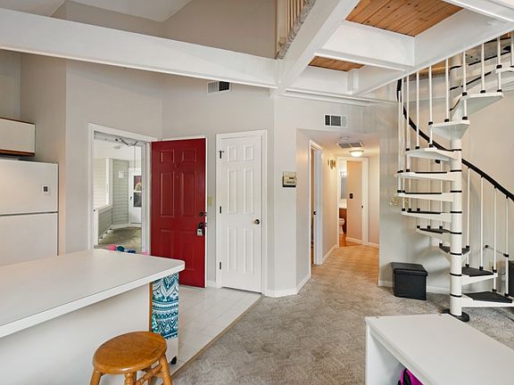 CALLING ALL FIRST TIME HOME BUYERS AND DOWN SIZERS! Welcome to the gorgeous Mill River Village! This unique condo offers a character and style that is hard to come by. Spacious living room boasts a stunning beamed ceiling with wood features, spiraled staircase, slider to your private covered balcony and is open to the kitchen for seamless entertaining. One step kitchen offers a breakfast bar to enjoy a quick morning coffee and cathedral ceiling. Two first floor bedrooms, second bedroom has its own entry into the full bathroom and in unit laundry. Second floor loft expands your living area and is great to use as a family room or home office! Don?t worry about storage, you have additional space in the basement for all your holiday d?cor, seasonal clothing, etc. Front porch is perfect for welcoming guest and overlooks the meticulously landscaped grounds. This opportunity can?t be beat! Call before it?s gone!