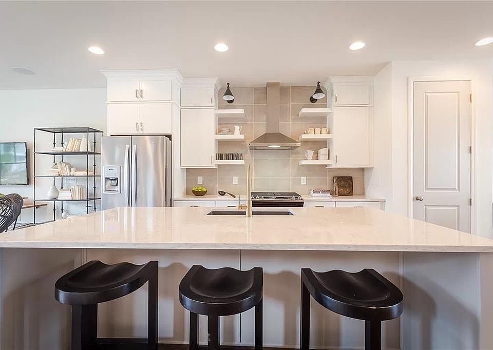 - Features: Cabinets White, Eat-in Kitchen, Kitchen Island, Pantry, Stone Counters, View to Family Room