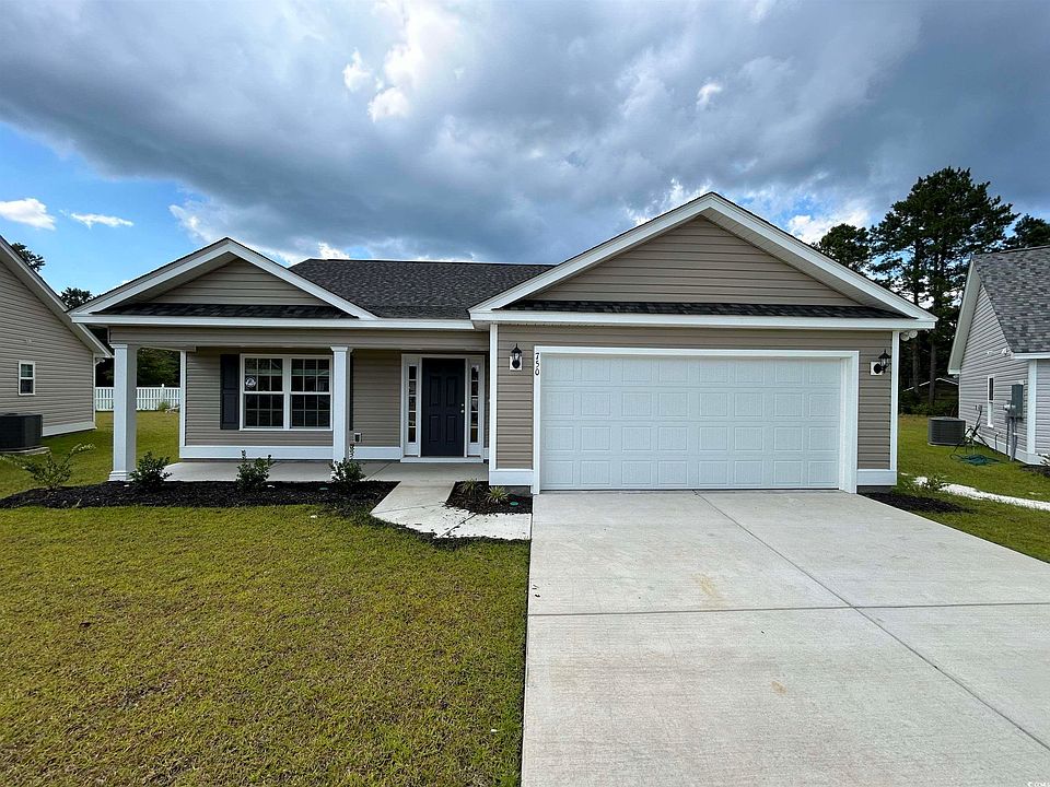 Move In Ready Home! - Enjoy the freedom of owning a low maintenance, single level home that checks all the boxes. The Busbee floor plan features great cabinets and counter space with a breakfast bar, spacious pantry, ample closets for storage, and low maintenance waterproof laminate flooring gives the look of wood with easy care and cleanup. The private master suite also offers a large walk-in closet and 5' shower and spacious vanity. Other features and benefits of this home include but are not limited to; designer kitchen featuring stainless Steel appliances, profiled Aristokraft™ Shaker style Cabinets with hardware, granite countertop package with polished stainless steel sink and pull out faucet, durable waterproof LVP flooring in living areas with stain resistant carpet in bedrooms, interior trim package includes window casings and stool for durability and appeal, relaxing baths with cultured marble countertops with integral bowl; executive height vanities in all bathrooms; elongated toilets; contoured fiberglass shower and tub units, maintenance free exterior features such as premium vinyl siding, soffits and fascia; and high performance GAF™ Architectural shingles, spacious covered rear porch overlooking extra grilling patio, natural gas package including gas heat, Rinnai™ tankless Hot water, and gas range, covered rear porch and patio, vaulted ceilings, 2 car painted and trimmed garage with Liftmaster™ MyQ wifi enabled garage door opener, and drop down attic access for storage. Woodside Crossing is located on Four Mile Rd just 10 minutes to downtown Conway and minutes from Hwy 22 with quick access to Myrtle Beach, Little River, North Myrtle Beach, etc. Building lifestyles for over 35 years, we remain the Premier Homebuilder of new residential communities and custom homes in the Grand Strand and surrounding areas. We are three-time winners of the Best Home Builder award from WMBF News Best of the Grand Strand. In 2023, we were also voted Best Residential Real Estate Developer in the Myrtle Beach Herald Reader’s Choice Awards. We began and remain in the Grand Strand, and we want you to experience the local pride we build today and every day in Horry and Georgetown Counties. Take comfort in one of our newly constructed homes that has a reputation for quality and value. Whether you are a first-time home buyer or looking for your next home, we are excited to welcome you home at Woodside Crossing! Pictures, photos, colors, and layouts are for illustration purposes only and can vary from home to home. Customization may be possible – call listing agent for availability. Square footages are approximate.