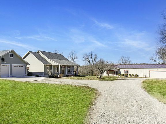 Picturesque 24 acre hobby farm with drop dead gorgeous main home. Designer finishes, ideal floorplan, gorgeous Ozark Mountain views, to-die-for kitchen. A little over 2000 square feet, it's just the right size and it's all on one level. Seriously perfect! The 2br 2ba 1560SqFt guest house with attached 2 car garage makes for a great office or workshop, and could be a nice living quarters with a little work. Barn, chicken coop, pond, and fenced areas ready for horses & chickens. Bull Shoals Lake access is just down the road. All this only minutes from the convenience of Branson or Forsyth. It's the place you've been dreaming of!