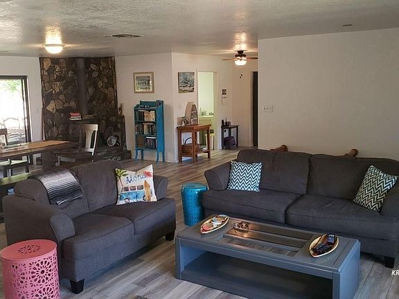 Beautiful large 2 bedroom home which sits at the edge of the neighborhood. Just beyond is Government land with miles of hiking, biking or hunting land for your enjoyment. This home has plenty of fresh updates that are sure to please... now with an open concept floorplan, new flooring, fresh paint throughout with a pleasing color palate plus green grass to go with it! No water lawn - stays green all year long without the maintenance. Chicken coop, dog run, just to name a few of the extras you will find out here in the country. Please make your appointment today to view this lovely home.