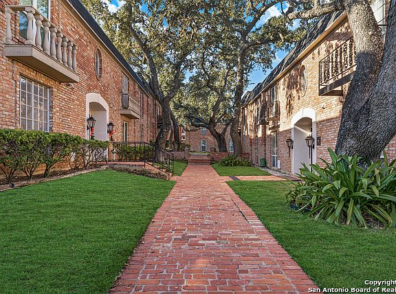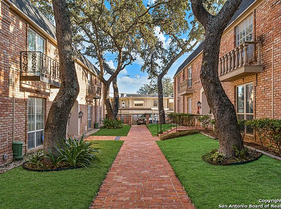 Are you looking for easy access to IH-10 and Loop 410? Then come see this all-brick, oversized condo located in central San Antonio. In a quiet, gated community with shade trees all around, you don't want to miss it! Located in the Medical Center, just a 15-minute drive to downtown, it is close to the Rim, the Shops at La Cantera, the San Antonio International Airport, UTSA and more. As you enter this spacious home, guests are greeted by wood-look laminate floors and fresh interior paint completed in November of 2020. A welcoming, open family room is ideal for entertaining and hosting holiday gatherings. The kitchen is perfectly located off the formal dining room and includes recent wood-look ceramic tile floors, all-white cabinetry, and built-in appliances. The breakfast nook overlooks a private balcony with access to the parking court and pool area. The secondary bedroom provides easy access to the hall bath which features a walk-in shower and updated, solid-surface vanity with a large, framed mirror. In the rear of the home is an oversized owner's suite with a private bath and - not two but - three closets and one of which is a walk in. The bath also includes a closet with the convenient washer/dryer (all in one). Homeowners will also enjoy two reserved, covered parking spots. Come explore this low-maintenance home, it won't last long!