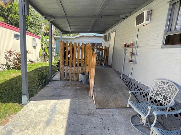 This cozy 1 bed 1 bath is situated on a corner lot and fully fenced in . It's in an affordable family park with a low lot rent of $485 per month which includes trash, lawn care, and Seward. Water bill is metered separately. The home is well landscaped also has small cemented paved patio in the back for sitting area or bbq. The home has a small wood ramp and small deck where you can enjoy coffee in the morning while watching the sun rise. Appliances include stove, refrigerator, small cabinet for pantry and some crockery. There is a washer outside. This home is close to US 19, not far from Gulf of Mexico beaches, restaurants, movie theater, hooters and not far from Clearwater or Tarpon Springs. This little place can be paradise for the right person. It is a vintage piece born in 1957 with lots of original pieces still left. Call today and make an offer before it's gone. All listing information is deemed reliable but not guaranteed and should be independently verified through personal inspection by appropriate professionals. Integrity Mobile Home Sales cannot guarantee or warrant the accuracy of this information, measurements, or condition of any property. Measurements are approximate. Lot rent is subject to change.