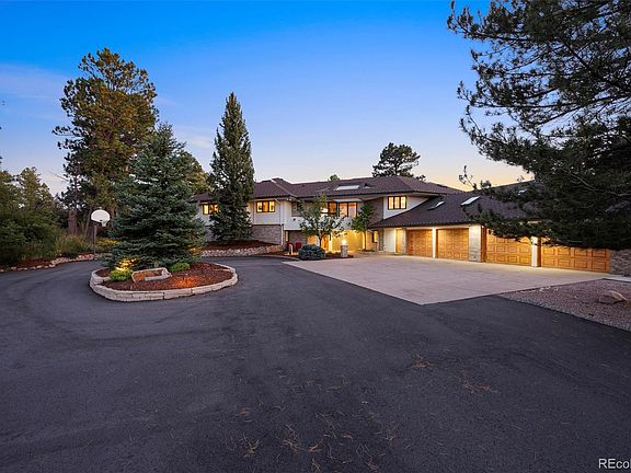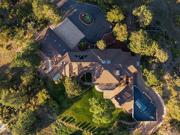 Welcome to your one-of-a-kind retreat. Located at the end of a cul-de-sac, in the center of the Butterfield community and nestled on 5 acres, surrounded by trees and rolling hills, you can feel the sense of seclusion while being just minutes from shopping and restaurants. The estate is an entertainer's dream, with a heated 20,000 gallon indoor pool, a recently remodeled wet bar with beer taps, gourmet kitchen and expansive areas to relax or gather with friends and family. As you come in the main entrance, you are greeted by a gorgeous wooden curved staircase and floor to ceiling windows showcasing the western views. Make your way outdoors and across the cat-walk bridge to take in the sunset over the mountains from either of the two elevated decks. With views from inside the home and out, from Pikes Peak to Longs Peak, you will never grow tired of looking west. The Primary suite showcases a spa-like bath with heated floors, soaker tub and a walk-in closet with secondary laundry. The chef's kitchen hosts stunning granite countertops with Sub Zero and Wolf appliances. The dramatic sunroom, encased in windows, offers unparalleled views of the property. The expansive list of features this home has to offer includes a new boiler and mini-split cooling systems throughout the home. Fiber optic internet. Freshly paved driveway. Heated and epoxy coated 4-car garage. Sonos home audio system in 7 rooms of the house. Ring cameras front and back. And a dumbwaiter in the panty. The list goes on and on! One must step inside this home to truly appreciate this sensational property. Set your showing today and experience this expectational property! Check out the video, here! https://youtu.be/oC5Ev98nvsA?si=0if24V5J0H8savbt