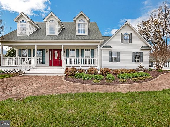 Charming Cape Cod with a sweeping front porch. Relax and enjoy the view, 4 Bedrooms, 3 Full Baths, In the summer enjoy the screened in porch, Open Kitchen to the Great Room, Separate Dining Room, Mud Room off of the garage, Lots of hardwood floors on the main level, Screened in Porch and Spacious Wood Deck, Basement has plenty of storage, 1 Car attached garage plus a separate 24' x 24' Detached Garage with Bonus Room, 2 heat pumps with Propane Backup, Shed, Flag lot on 10 ACRES.