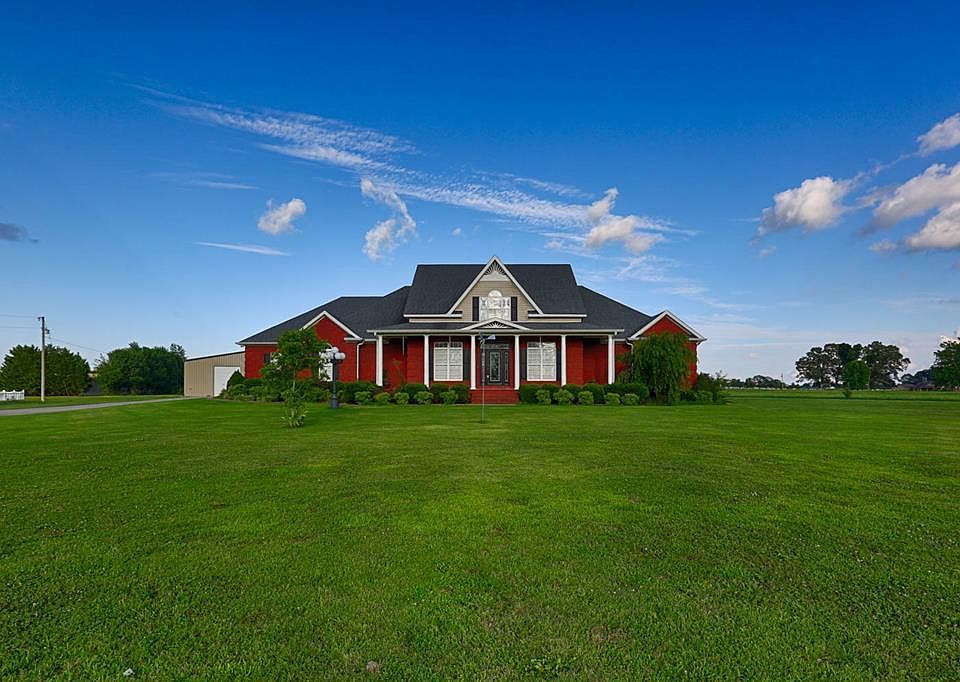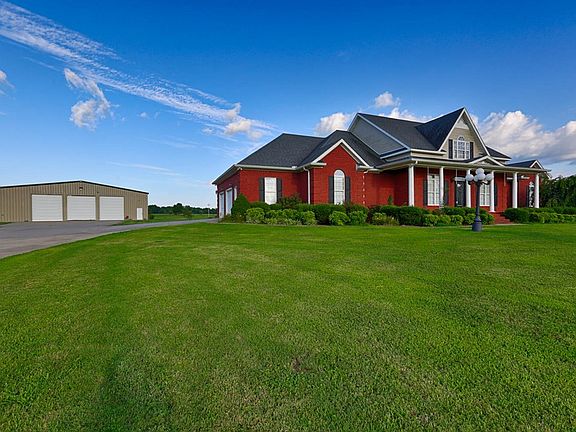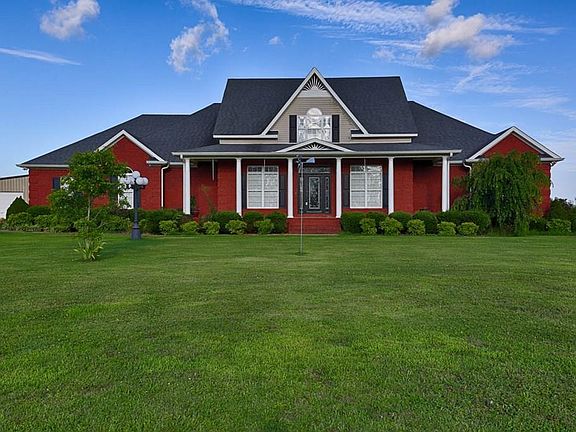 Gorgeous Brick Home & 5.3 Ac +/- & 60' x 70' Metal Garage! Foyer leads to formal dining room & great room with gas logs fireplace. Hard wood flooring & crown molding. Kitchen: pantry, bar, stainless steel appliances, granite, plenty of cabinets, breakfast room view to covered patio including Hot tub. Master suite bedroom: patio doors, sitting area, master bath whirlpool tub/tiled shower & walk-in closet. 2 Spacious bedrooms: closets & full Jack/Jill bath. Also laundry room & half bath. Upstairs: Recreational room with great lighting, bedroom & full bath. Attic floored for storage. Attach over-sized garage & storage room, plus tornado storm shelter. Awesome 60' x 70' Metal shop, 3 RV coil roll-up doors, wash bay, concrete floor re-bar reinforced, Nice office has heat/air wall unit, half bath, utility sink & closet. All on 5.3 ac +/- landscaped level yard & garden spot. Just off Hwy 72 easy access to the Shoals, Pulaski, Decatur & Athens. Must See!