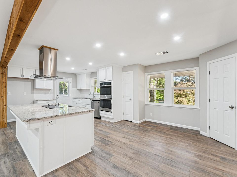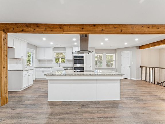 PRIVATE, sprawling multi-generational homestead! SO MANY FEATURES: 5 bedrms, 4 full bathrms, OVER 3400sf living space, huge eat-in kitchen w/ granite, soft close cabinets, & stainless steel appliances, ZERO entry MIL suite w/ separate entrance, FULL kitchen + walk-in closet! FLAT +/- nearly 4 acres at very end of dead-end street, semi-treed & NO neighbors behind. HUGE detached shed/workshop w/ power & HVAC - could easily add garage doors! Beautiful long circle driveway, stately cedar columns & shutters. French doors from the living + dining rms lead out to deck which spans entire length of house (partially covered!) & overlooks the SPACIOUS backyard. Watch deer stroll thru, fence off a portion for fur babies & kids, throw up raised garden bed/chicken coop/green house, install pool, etc.!NO HOA/COVENANTS & RESTRICTIONS. Both HVAC/heat pump units 2022, metal roof, completely renovated 2022, basement MIL suite & kitchen 2023, shed built 2023. Septic replaced 2022.