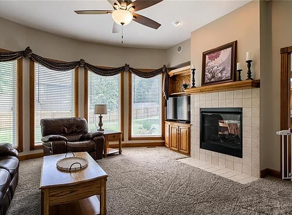 Welcome to this fantastic 1.5 story home! The chic front porch welcomes you right inside. Double-sided fireplace in the cozy living room and dining area. Kitchen has large island perfect for the family cook! Convenient bedroom-level laundry room. Master suite has a beautiful tray ceiling, jet tub, separate shower, and walk-in closet. The roomy lower level family room has plenty of space for your big-screen TV and pool table. The patio and stunning large flat backyard will become your new outdoor entertaining area.