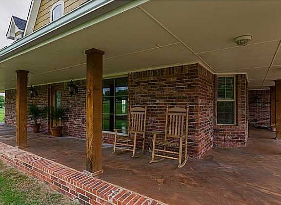 YOUR DREAM COME TRUE! Exquisite country home , sweeping porches & vistas, decorated to perfection, large granite kitchen, Viking stove, stainless appliances, hand scraped wood floors in dining and study, 4 beds + study + 32'x20' bonus room! Shimmering saltwater diving pool. Pool house has 1/2 bath, massive storm shelter,fully fenced for livestock, approx.1/2 lot has sprinkler system! 4 car tandem garage (32'x20'). What ARE you waiting for?