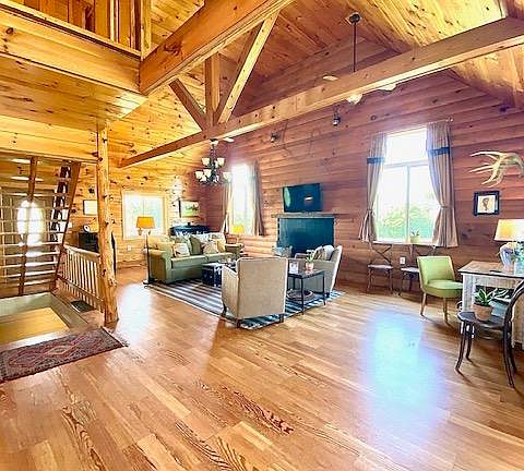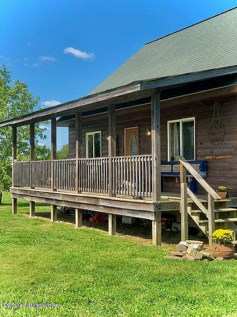 Welcome to the country, 10.5 Acres, Barn, perfect for live stock! Sit on your front covered porch, back covered porch or back deck with nature all around. Enjoy your beautiful log cabin home that provides an open floor plan that features vaulted ceilings, wood floors, and windows galore that provide lots of natural light! Wonderful loft with bedroom and bath over looking living area. Basement has been perfectly finished with a large bedroom, walk-in closet, full bath, family room and a mud room. It will not last! Hurry!