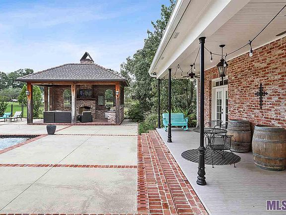 Driving up through the gated entrance to this exquisite home on 5.84 acres, you'll notice the beautiful trees surrounding the driveway and stunning brick construction with a large porch and balcony that's completed with six grand white columns. Upon entering you are greeted by a beautiful foyer featuring a brick archway into the living area, triple crown molding, and a grand staircase complete with wrought iron railing. The heart pine floors continue throughout the entire downstairs and the living room features a beautiful brick fireplace surrounded by built ins and French doors leading to the outdoor space. Antique wood beams greet you into the kitchen that includes a large island, granite countertops, farmhouse sink, tons of cabinets for storage, antique pantry door, and all stainless appliances including a warming drawer, 5 burner gas cook top, and a sub-zero refrigerator. The master bedroom is located downstairs and features a spacious bathroom with a huge walk-in closet. You can also access the beautiful outdoor space through the master bedroom. Head upstairs to find three excellent sized bedrooms, all with large closets and new engineered old-character wood flooring. The outdoor space is what dreams are made of! The large covered porch leads you to the gunite pool with aluminum fence surrounding it. The outdoor kitchen area includes granite countertops, built-in grill, fireplace, an ice maker and a spacious seating area that is perfect for entertaining! The pool house with full bath can easily be used as a mother-in-law suite. There's also a "man-cave" above the garage that has so many different uses! Other features include a new A/C system, sound system throughout the home, irrigation system, built-in dog kennels with automatic watering system. This home is full of custom upgrades that you have to see to fully appreciate! List of all amenities in MLS docs. Call for your personal tour today!