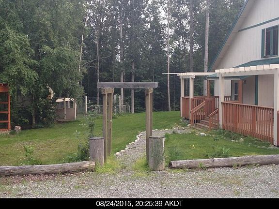The Alaskan dream! The privacy of remote Alaska yet close to all the conveniences and a quick commute to Anchorage! This 2280sf, 3 bedroom, 2.5 bath open floor plan home sits on a 1.5 acre wooded lot with an attached 768sf two car garage with room for all your toys. The lot also features an 8'x10' shed with power, a fully functional chicken coop and staked archery range.