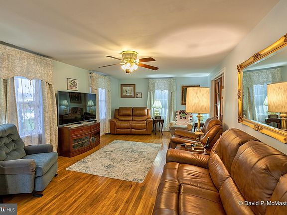 NEW LOW PRICE! Lovely, detached, 4-bedroom, 3.5-bathroom, c. 1947 Colonial with wood floors throughout on a .73-acre, deep lot with lovely landscaping, trees, and huge back yard that extends to the rear fence. Enjoy lounging on the large, covered front porch with porcelain tile floor. The main level bedroom suite features a full bathroom, plus the second level bedroom suite, which also has its own bathroom, should accommodate your household needs. 2005 renovations ($160,000) included the roof, plumbing, 400-amp electrical, insulated vinyl siding over concrete block, tilt-in thermal pane windows, two heat pumps, bathrooms, and kitchen. The oversized 2-car garage, built in 2017, has automatic doors, remotes, a 220 outlet, concrete floor, and side door to a concrete block patio. Ample additional parking on the concrete driveway, and approximately half of the gravel driveway adjacent. In the rear, are an old shed with two entrances, and a large, c. 2009 shed. Conveniently located close to Williamsport, Hagerstown, Sharpsburg, Antietam Battlefield, the Potomac River, Shepherdstown, Harpers Ferry, Martinsburg, and much more.