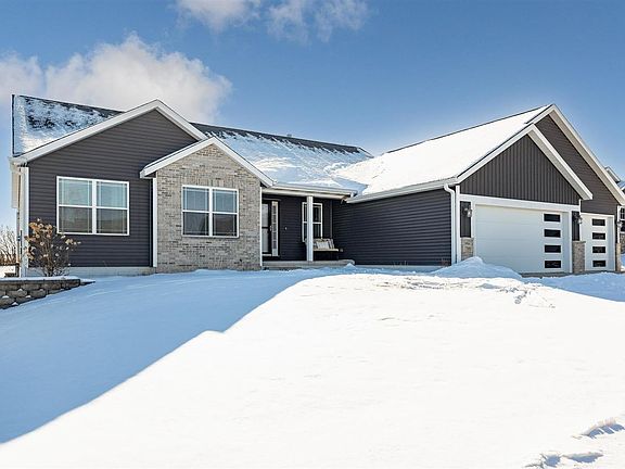 This meticulously maintained, 1-owner ranch home in desirable Stoney Pointe offers an abundance of natural light & a private, fenced backyard w/ a patio & fire pit. With a bright & sunny open floor plan, you'll love the vaulted LR ceilings, the spacious eat-in-kitchen w/ big breakfast bar, dining area & ample cabinets for storage. The large living room windows & sliding glass doors off the dining room have views of the backyard that backs to a field instead of homes! Other convenient features include a main level laundry room w/ utility sink & an extra large, extended 3 stall garage; perfect extra storage for all your toys! The finished LL features a large rec room w/ theatre surround sound wiring capabilities, a wet-bar, 4th bedroom & 3rd full bath. Major updates include new LVP flooring throughout the main level (2020), a new roof, new siding, new front door & garage doors (2021), and fresh paint throughout (2022)!