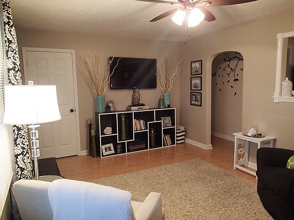 7501 Eichele Dr. House Description Welcome to this newly updated 3 bedroom, 2 bath, almost 1300 sq. ft. home that sits on 0.62 acres. This is a framed home with a crawl space. You can enjoy the privacy of the expansive back yard with a wooded tree line while sitting on the back deck. There is an extra deep detached 2.5 car garage with newly built shelving throughout for extra storage, a toilet room, utility sink, work bench, wood burning stove, and a lean-to with mini garage door on the back for all your yard equipment. Home offers laminate wood flooring in living room, kitchen, and dining room, with tile in the bathrooms, and carpet in the bedrooms. There is new hardware throughout the entire house, new ceiling fans, and new lighting. There is a separate pantry/laundry room off of the kitchen. The kitchen has a bar that seats four barstools with an open dining room adjacent. Master bedroom has a walk-in closet and master bath has separate soaking tub, new stand-up shower, new marble countertop, new 18 inch tile floor, and overhead heater. Home is located on a kid-friendly dead end drive with very little traffic and has great curb appeal with an abundance of landscaping surrounding the entire house! All appliances included! Call for an appointment! 812 760 4864 Andy