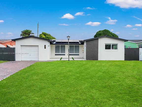This spacious 4 bedroom 2 bathroom home with a pool and 2 car garage comes completely updated. New Kitchen, New Bathrooms, and New Roof, New Solar Panels, New Electrical, New Plumbing, New Water System, and all with permits. Metal roof was installed in 2021- with a 50-year warranty. The home has a large open living room with an open dining room adjacent to the open kitchen. The living room leads to the large outdoor pool deck. The owner has placed beautiful green artificial turf in the backyard for low maintenance. With the current solar panels buyer may receive Avg electric savings $300 monthly and will receive approx $3000-3600 annually from FPL credits. Additionally could receive a $30K tax credit. NO ASSOCIATION. Perfect for a first-time buyer, growing family, or for Airbnb income.