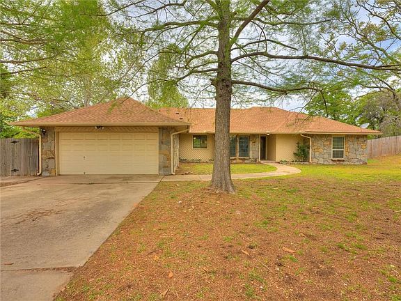 Schedule your showing now because you do not want to miss the opportunity to own this home. 2143 sq. ft. 3 bedroom, 2 bathroom, 2 car oversized garage on an 1.06 acres; price to sell! Enjoy the peace with this beautifully treed acre corner lot. As you enter the foyer there is a beautiful formal dining and huge living room with a wood burning fireplace. The kitchen has beautiful solid wood cabinets, dishwasher, compactor, and a kitchen peninsula with a breakfast nook. Master & guest bathrooms are spacious and have dual vanities and are very spacious. RV or boat pad with gate access. Desirable school district. Minutes away from Tinker, I-240, and I-40.