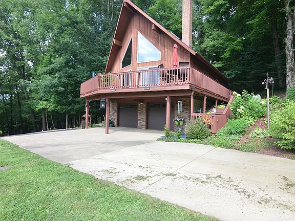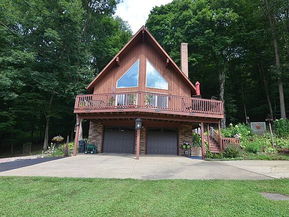 Your wooded escape awaits you on this hillside get away in southern Richland County. This well maintained A-Frame/Chalet offers views and sunsets from it's broad windows to the west and 2nd story deck. The 10 wooded acres offer trails throughout, cris-crossing the lot with a magnificent acre on top of the site ideal for camping. The home offers a first floor master bedroom and full bath, and an open concept kitchen/living room which features a wood stove for supplemental heat. The loft area and bedroom has a 3/4 bath attached as well. A 2 1/2 car garage underneath the home, and a 24' x 40' metal pole building has plenty of room for vehicles and storage. Armstrong fiber optic internet.