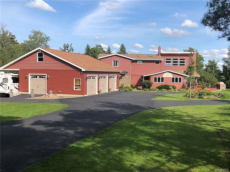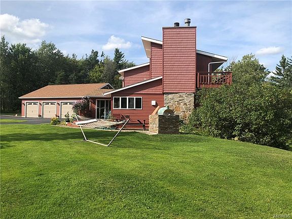 Open, airy space, with beautiful views from every room. First floor master or in-law suite, huge great room with fire place, and large eat-in kitchen, half bath and laundry. Four large bedrooms with plenty of closet space and two bathrooms on the second floor. Walk out basement with sauna, office, half bath and workout area and an outdoor hot tub and shower. Two year old three+ car garage with upstairs office/storage space. All on three glorious, private acres.
