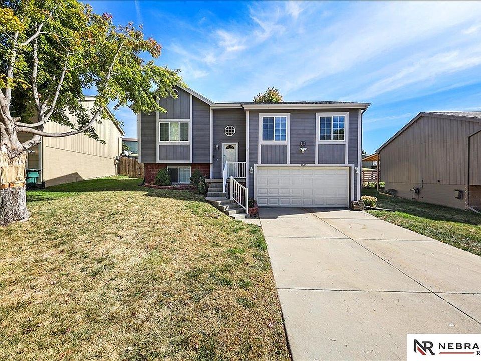 Check out this Northwest Omaha home! Situated near shopping, walking and bike trials, parks, and Lake Cunningham, this 3 bed, 2 bath home is ready for new owners. The vaulted ceilings make the main floor feel open and spacious and leads out to the large backyard. The backyard has a fire pit, garden areas, and electricity from a former pool pad that are great for entertaining or spending time outside. The 25-foot-deep garage is perfect for those looking for extra storage or room for hobbies or vehicles, the refrigerator is included. The primary suite includes an ensuite bath and walk-in closet. On the lower level, you will find another living area and a laundry room with the washer and dryer included. The seller is offering a $5,000.00 credit to go toward new flooring. This gem is ready for you to make it your own!