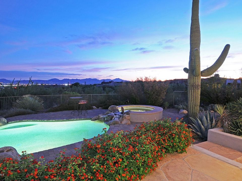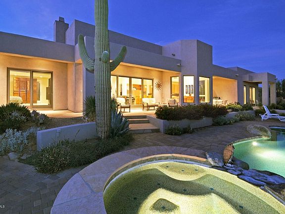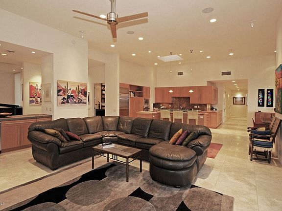 A stunning, sophisticated contemporary home in Pima Canyon Estates, a luxury community in the heart of the Foothills. Spectacular city and mountain views to be experienced from all the rooms and patios! Outstanding features: 24" travertine floors throughout; elegant stone fireplaces in three rooms; beautiful built-ins in the den/office and Great Room; ceiling fans;skylights! Gourmet kitchen with designer appliances,exquisite cherry cabinets, and island, and a spacious nook. Perfect for entertaining. A truly fine home in a quiet location.