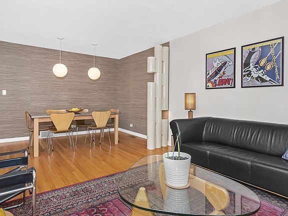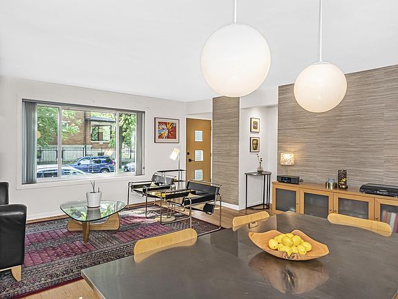 Fabulous Town home, just 1/2 block to Lake Michigan parks and beaches! NO ASSESSMENTS! Super sunny,Southern exposure welcomes in lots of sunlight on tree lined street that leads right to the Lake. Three floors of bright and spacious mid-century charm with many thoughtful updates by long-term owners. Hardwood on first and second floors. Renovated gorgeous townhome with gleaming hardwood floors,Newer double-pane windows (2007) allow streaming sunshine, beautiful grasscloth decor, separately defined dining area with double globe lighting. Stunning Chef's kitchen was renovated in 2015 with maple cabinetry, TWO lazy susans, soft close drawers, garbage/recycling pull-out, and gorgeous white solid surface counters compliment the stainless steel appliances including side-by-side fridge with ice/water, and double oven range, which allows for quick to temperature convection or gas cooking, with professional vented stainless range hood. Bright window over sink with pull out sprayer/faucet. Plenty of outlets for all of your devices. Pantry closet too, to keep those once-in-a-while kitchen gadgets. Bookcase/shelf for nic-nacs or cookbooks, too. Upstairs admire the steel, queen sized master bedroom, with 3rd bedroom use as a dressing room. Those cabinets can be flexible and re-used in other rooms if that isn't what the buyer needs. Primary bath was remodeled with extra deep soaker tub, and beautiful slate 1" tiles. Lower level fun rumpus room features wet bar for comfy tv watching, man-cave or she-cave use, home office, or it makes a wonderful kids play area. Having a party? Enjoy the wet bar while making your signature drinks! Plenty of bonus storage in the laundry area with newer washer and dryer (2017) cabinets for storage, a folding counter and extra sink for those dirty jobs. Tankless tankless water heater for energy efficiency(2008) means never running out of hot water for your shower. Sump pump means no water intrusion. Outside the kitchen is a small area to sit outside, enjoy your coffee or chill w a book. 1/2 block away is Lake Michigan and a park, perfect to take fido on a walk or just to stare into the water. This unit comes WITH A PARKING SPACE INCLUDED. Plenty of transportation options with the bus stop at the corner, or three blocks to Jarvis St Redline with the pottery social gathering in Jarvis Square just a few blocks away. Enjoy a muffin and coffee at Charmers Cafe, an Al fresco delicious meal at R Public house, or a drink after work at Jarvis Tavern. This is a lovely home you won't want to miss. And did I mention NO ASSESSMENTS? That gives a buyer an extra $150K buying power! AND....Remember, it's ALWAYS COOLER by the LAKE!
