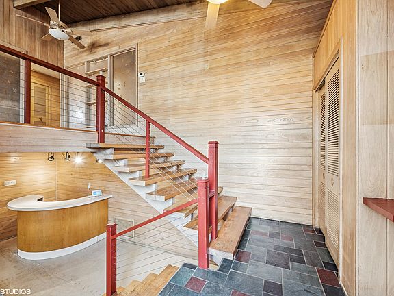 If you are familiar with Miller Beach's mid-century modern building boom in the 1950s you will recognize and admire this Lake view home just one house removed from the beach. Tongue and groove wood cathedral ceilings, supported by massive structural beams, multi levels, a semi open floor plan, and both open and covered Lake view decks. There is a Chicago skyline view, and of course we are surrounded by the Indiana Dunes National Park.