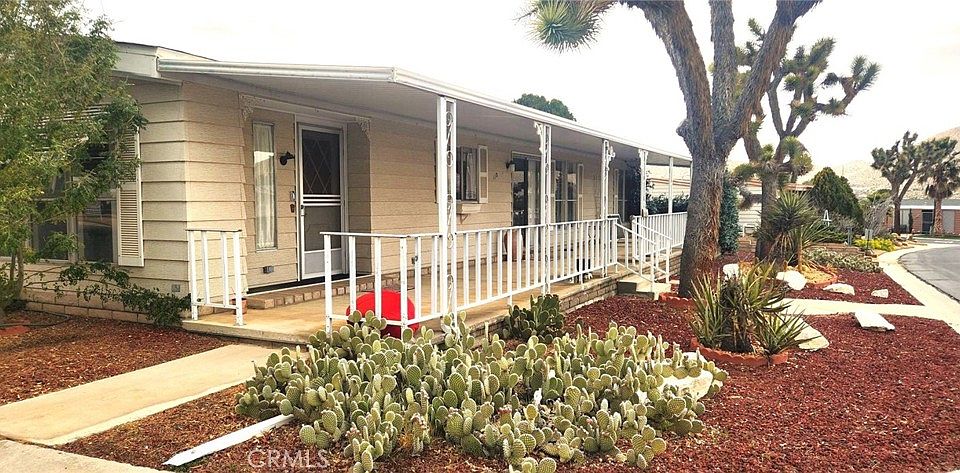 This home is located in Gates of Spain, a highly desirable 55+ park, and is an excellent value at $53,900. After a few cosmetic repairs, it will be a special place for you or your loved one. The massive covered porch adds value and is a comfortable gathering place to entertain friends or family. A close walk will take you to the pool or inside the large clubhouse. You and your friendly neighbors can enjoy this walkable mobile home park. The quality of life is fantastic in Yucca Valley, with its clean air and starry nights. Many art shows, music events, senior programming, and healthcare facilities add to this area's value. Park approval is needed once your offer has been accepted. Please schedule a showing right away before this one is gone.